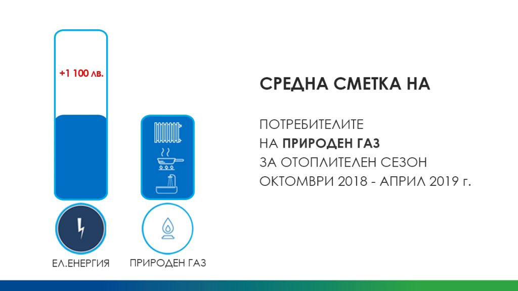 Семействата, които се отопляват с природен газ, вместо с електроенергия, пестят по приблизително 1 100 лева за отоплителен сезон. Това показват сметките на битовите клиенти на „Овергаз Мрежи“ от октомври 2018 г. до април 2019 г. Средната месечна сметка за синьо гориво през зимата е 138 лева. Ако газифицираните потребители бяха използвали същото количество електроенергия, за да поддържат високи температурите в домовете си, щяха да плащат със средно 150 лева повече на месец.
